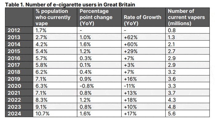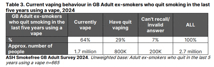 In this latest release of data ASH state that overall 5.6 million adults currently vape and 53% of them have stopped smoking.