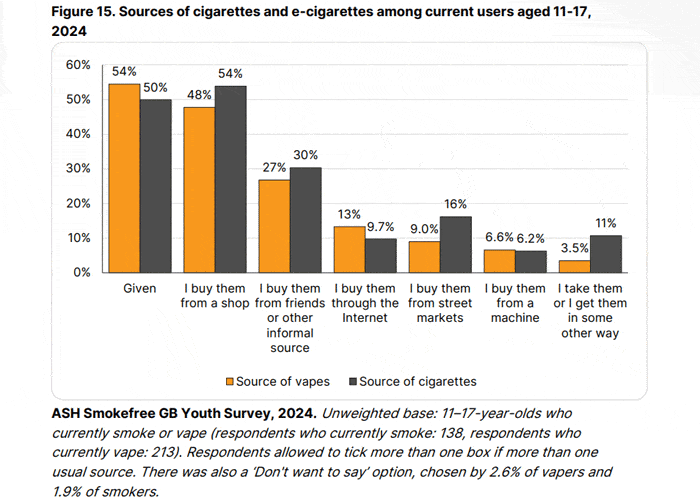 Sadly 48% of underage vapers were able to purchase vapes from shops despite laws prohibiting sales.