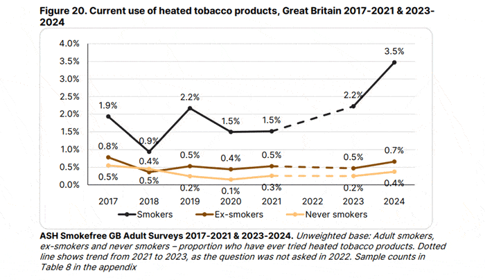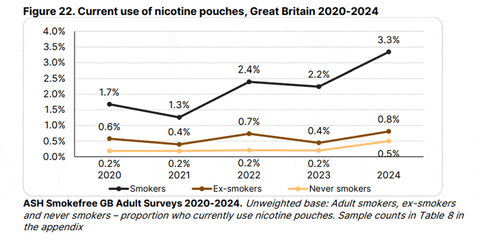 3.5% of current smokers are recorded as using nicotine pouches – up from 2.2% in 2023.