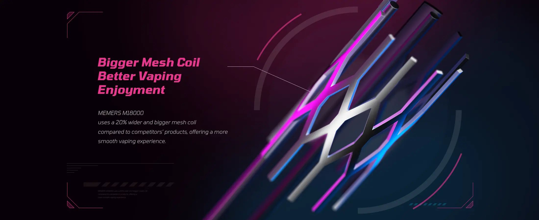- MEMERS M18000 uses a 20% wider and bigger mesh coil,The upgraded mesh coil inside adopts high efficiency material with low oil consumption.